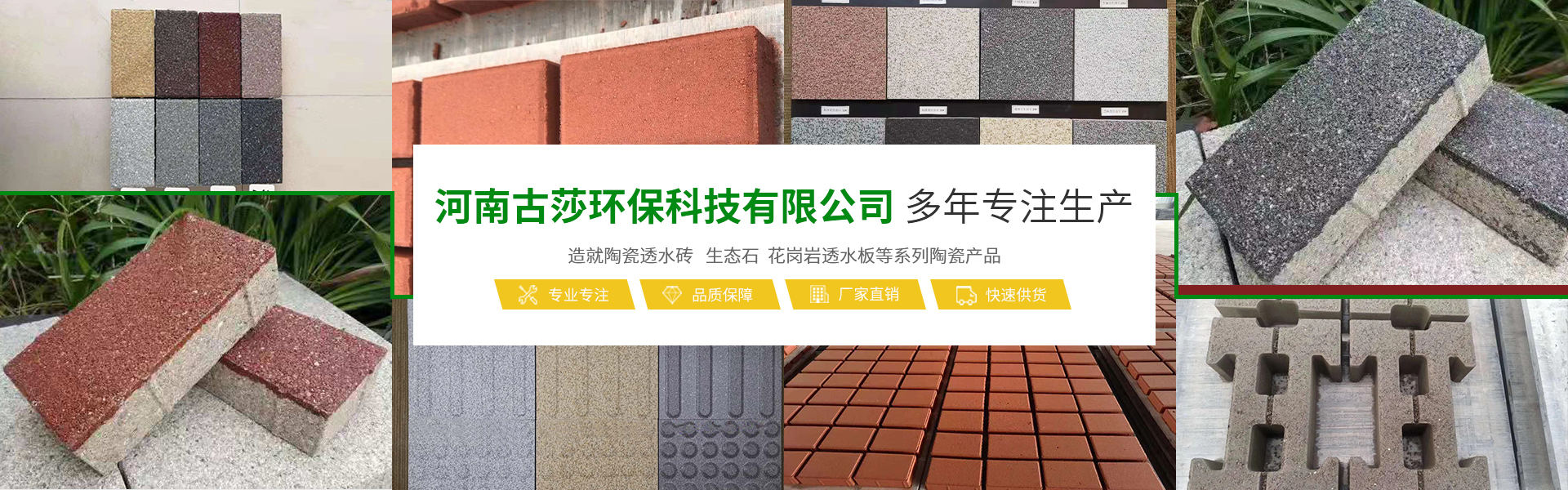 河南古莎環??萍加邢薰究傋溆诮煌屑~城市鄭州,是一家具備研發、生產、銷售能力為一體的綜合性現代化陶瓷企業。本公司專業生產經營生態陶瓷透水磚、生態鋪石、PC仿石材透水磚、PC仿石材景墻磚、普通透水磚、燒結磚等系列產品,完善的研發團隊,完善的生產流水線設備,打造完善的陶瓷企業。古莎環保科技現代化陶瓷企業是美化城市,改善生活環境質量的生態環保產品,可廣泛應用于公共建筑廣場、城市道路、公園、藝術景觀、廊道、房地產、別墅住宅小區、地鐵口、車站、高速公路服務區等。古莎環??萍荚谠刑沾善髽I基礎上,另拓展園林綠化、市政施工、瀝青包工包料施工、公路維修等業務板塊,專業培訓了一些園林綠化、市政施工技術人員,并有多年的施工養護經驗以及建筑工程經驗。保證市政工程施工質量以及園林綠化后期養護規范化、專業化。古莎環??萍妓裱钠髽I與品牌發展思路,是奠定在品質與產品應用之上。環保理念由我們共同倡導,理性思考,以推進步,感性溝通,以共建優越。古莎環保科技與大家真誠合作,攜手共進,為助力海綿城市建設,建筑高品質的綠色城市生活貢獻一份力量!